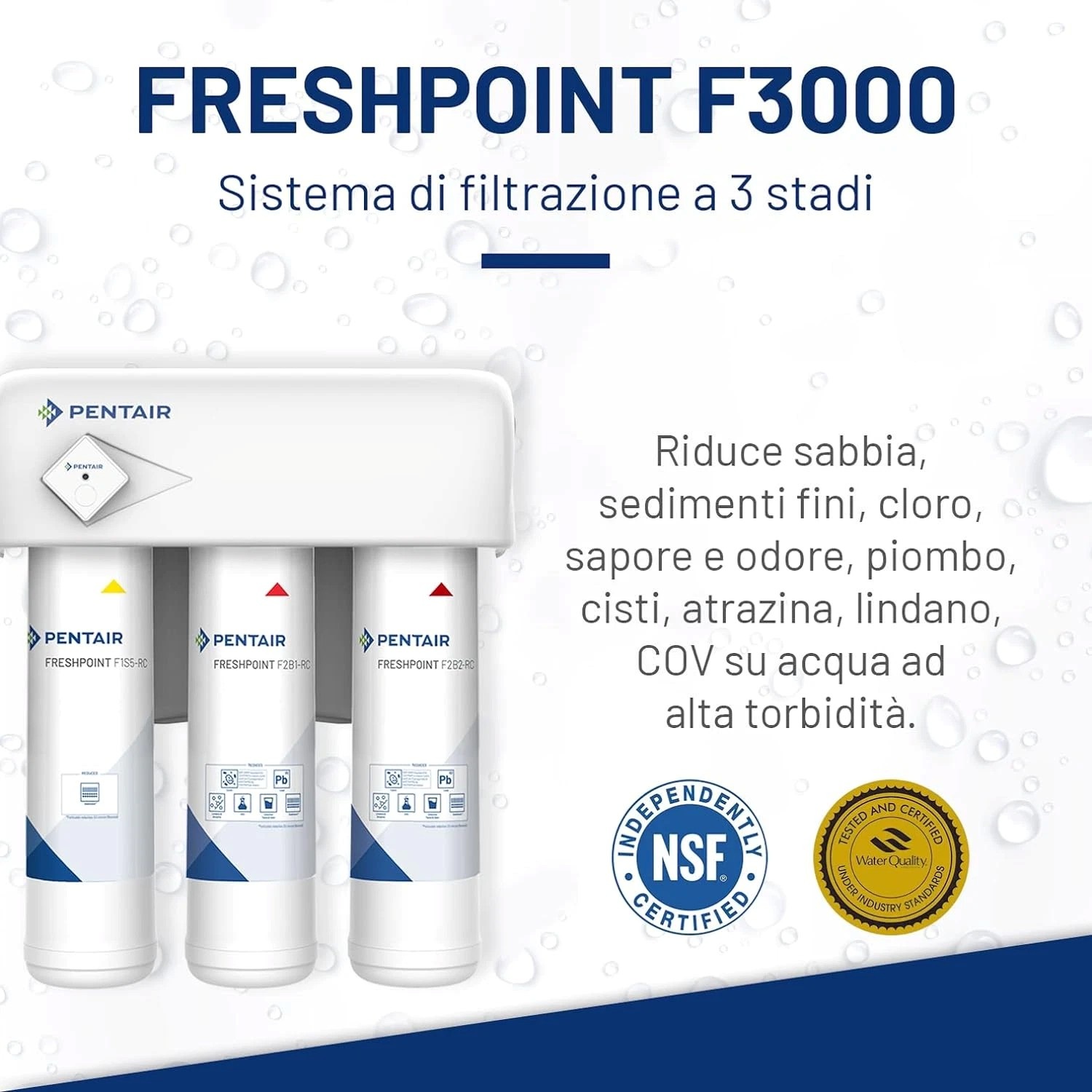 Pentair è un marchio di riferimento nel settore della filtrazione e il Freshpoint F3000-B2B è certificato NSF/ANSI Standard 53, garantendo la riduzione di contaminanti come: